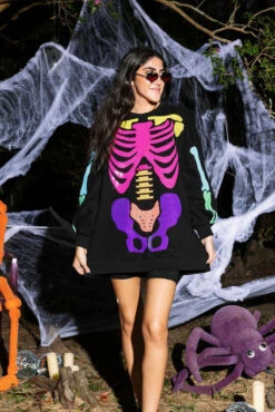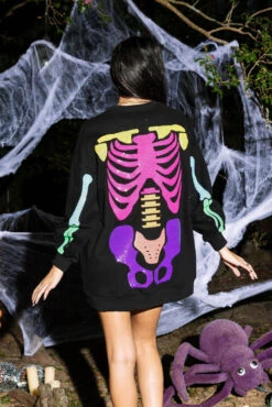 Black Rainbow Skeleton Sweatshirt Dress