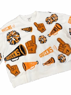 Stay cozy and stylish with this oversized gameday themed sweatshirt. It features a flower embellished helmet design in shades of gold & black. Perfect for any fan looking to add a fashionable element to their look.