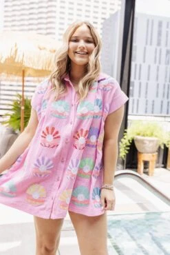 Pink Gauze Clam & Pearl Shell Dress