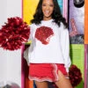 Experience a unique and stylish look with this Purple & Gold Cheers Girl Sweatshirt. Its oversized fit and sequin design will have you standing out on gameday while still being cozy and comfortable. Plus, the perfect balance of fashion and function that can take you from the sidelines to your day-to-day.