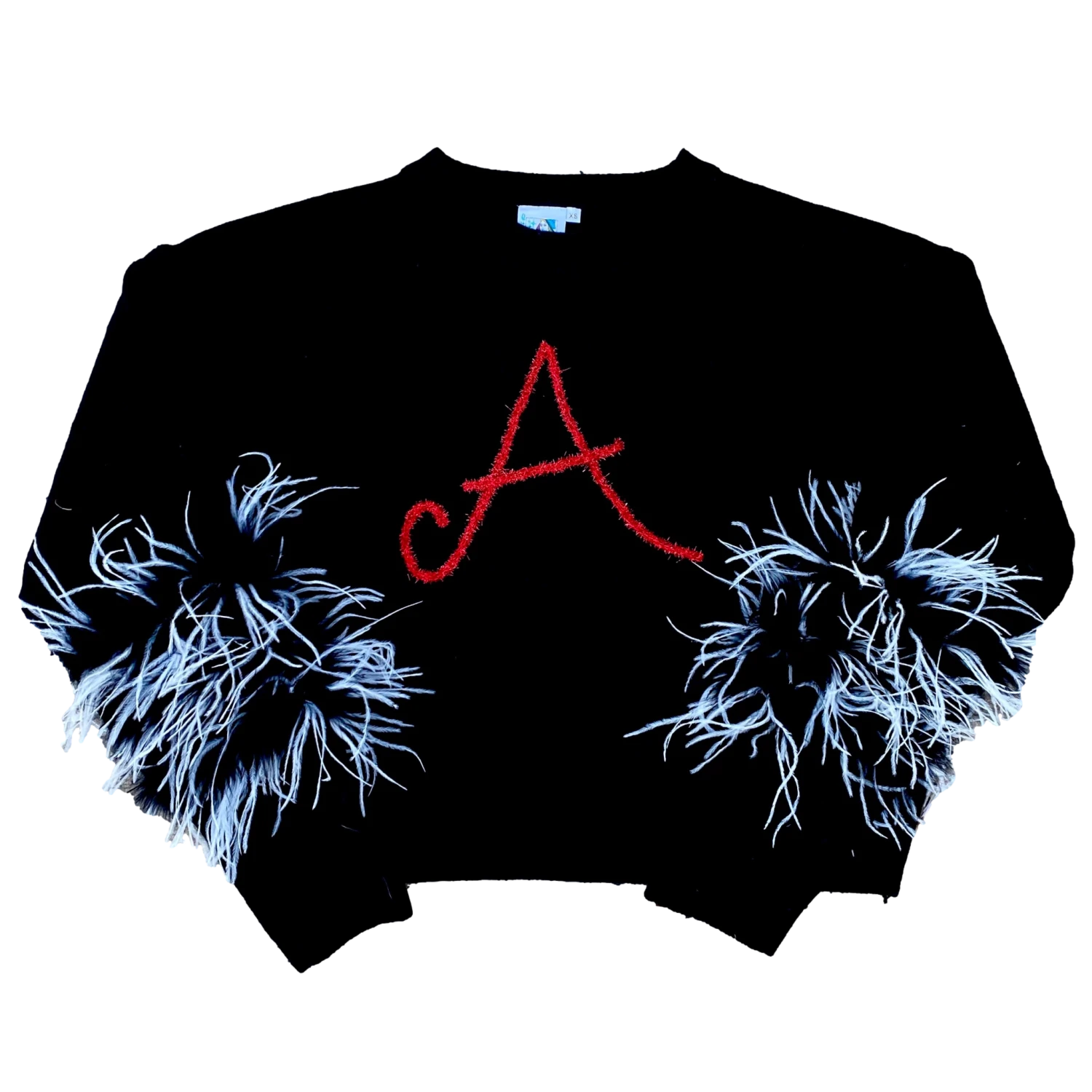 Queen Of Sparkles “A” Feather Sleeve Sweater
