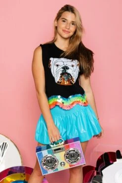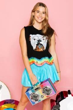 Queen Of Sparkles Black Bulldog Rainbow Wavy Sweater Tank