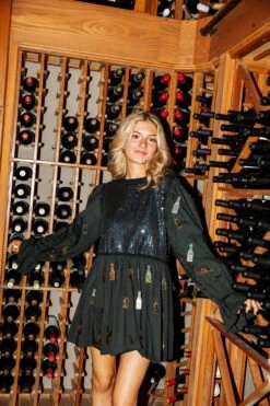 Queen Of Sparkles Black Champagne Bottle Dress