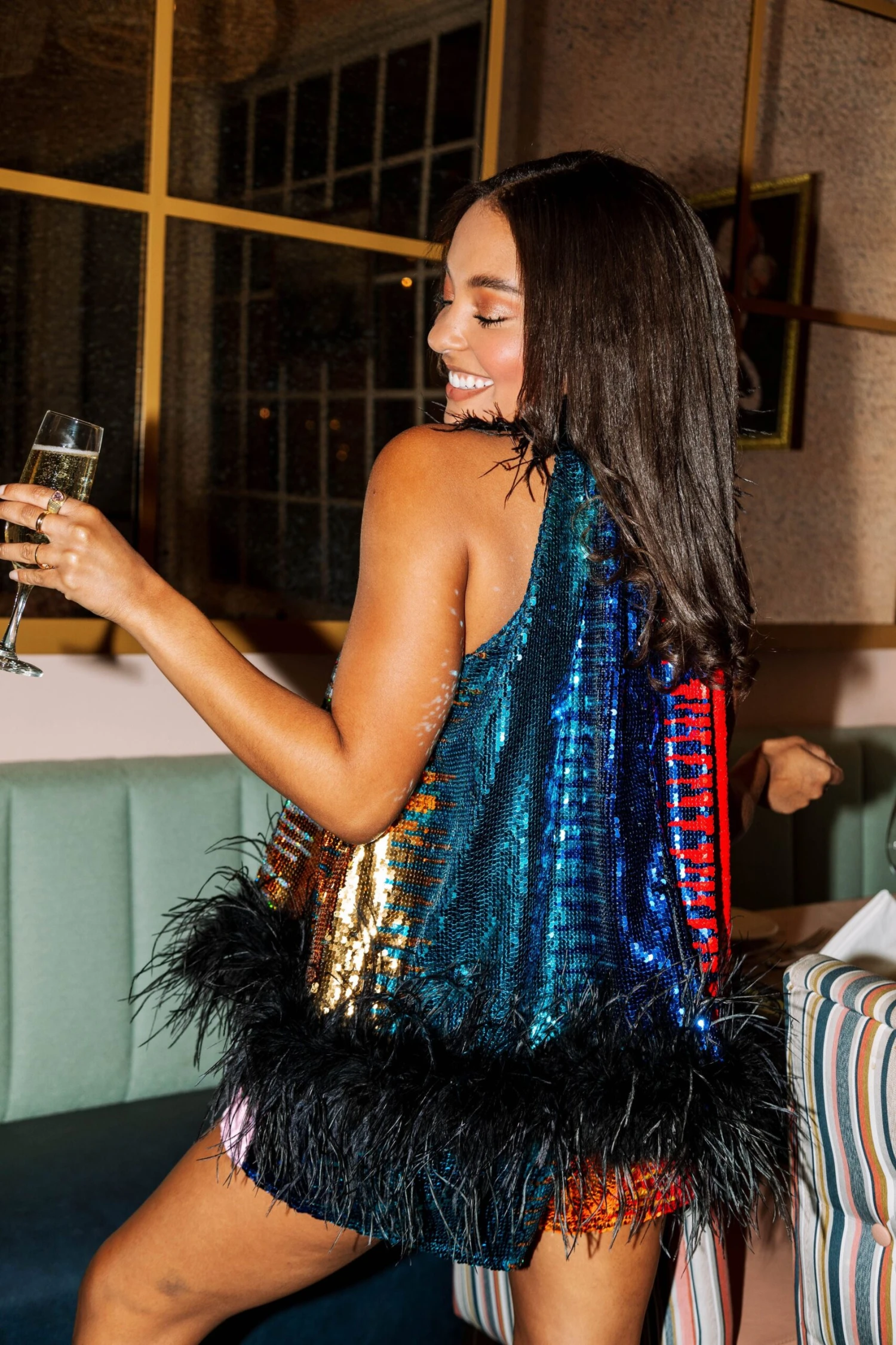 Queen Of Sparkles Diagonal Sequin Feather Tank