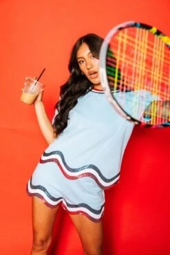 Queen Of Sparkles Light Blue, White/Red Wavy Top