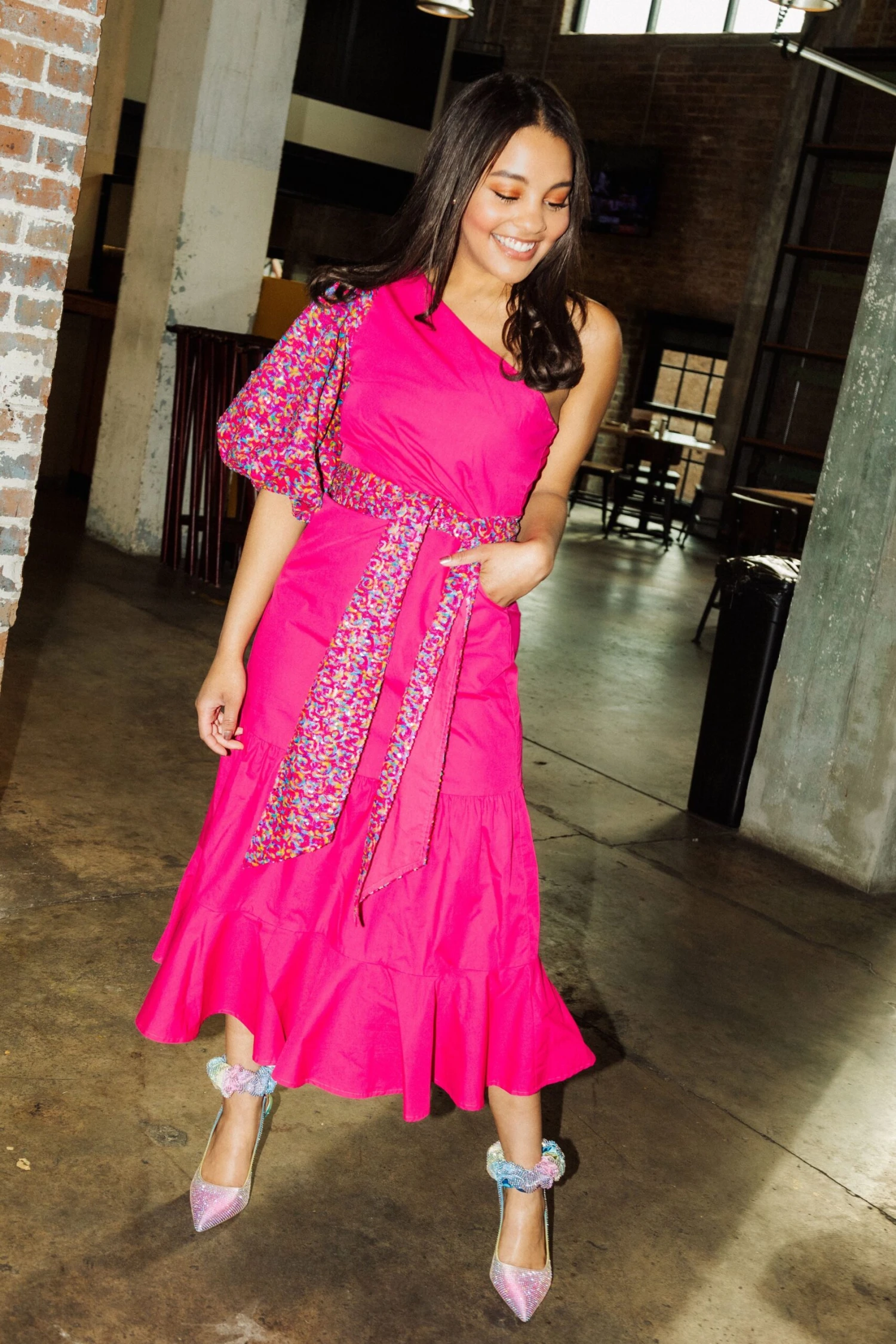 Queen Of Sparkles One Shoulder Maxi With Sequin Sash