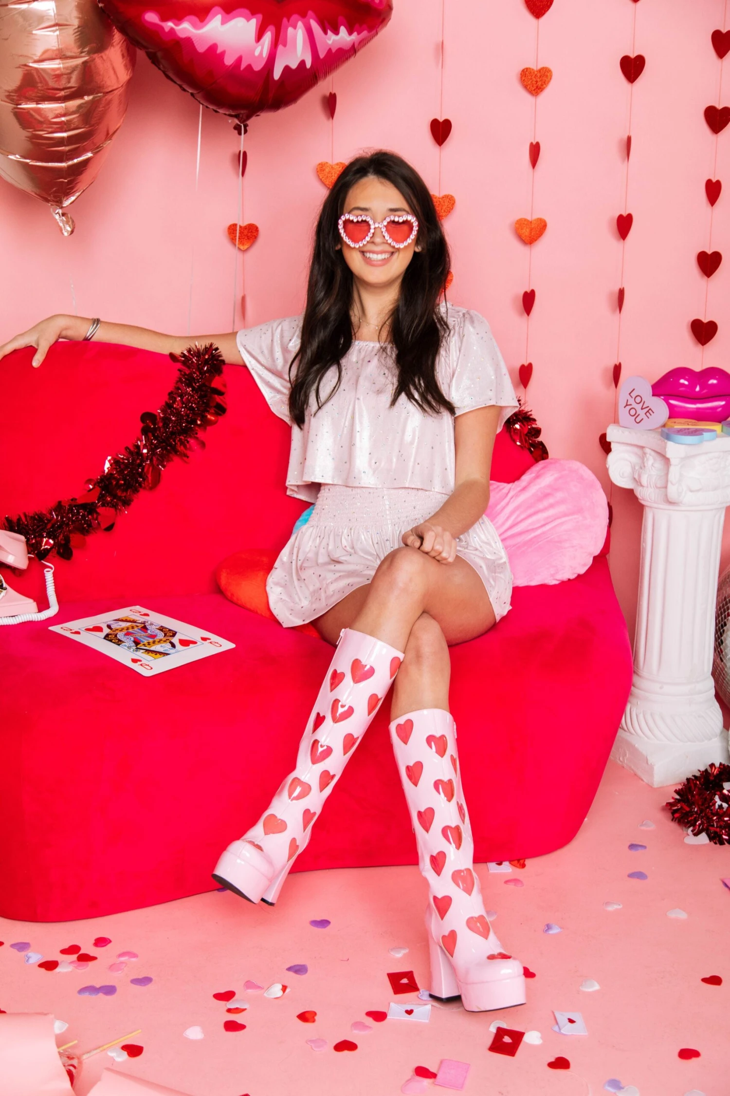 Queen Of Sparkles Pale Pink Glitter Hearts Flutter Top