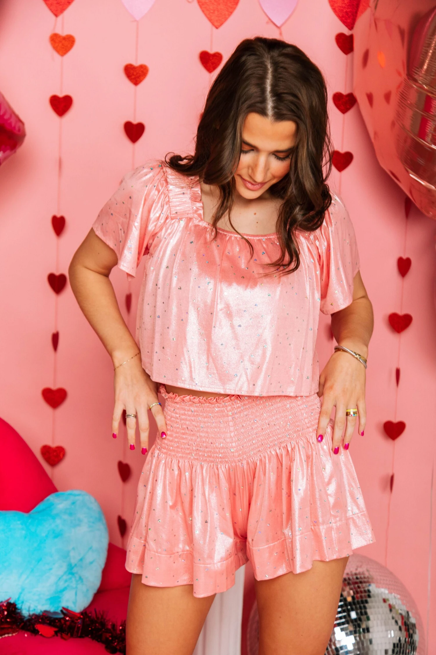 Queen Of Sparkles Peach Glitter Hearts Shorts