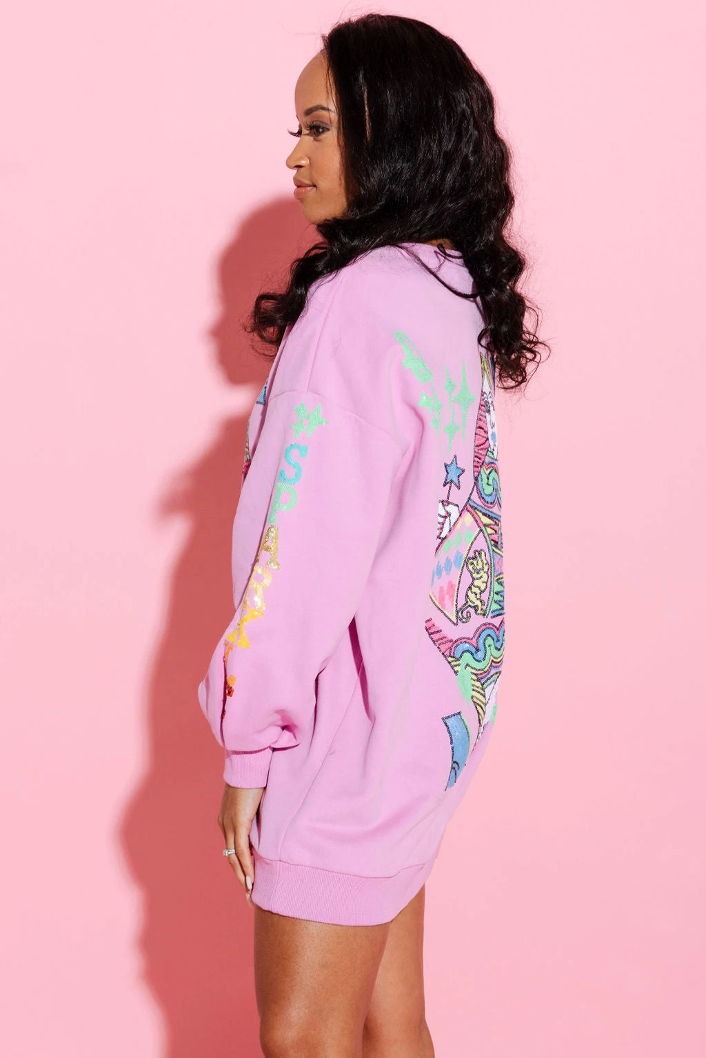 Queen Of Sparkles Pink QOS Logo Card Sweatshirt Dress
