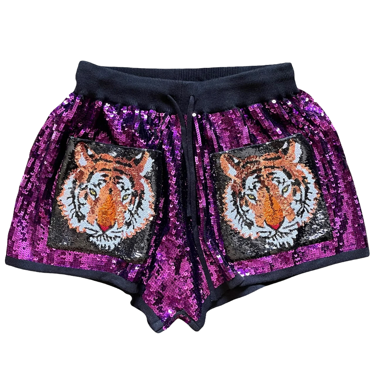 Queen Of Sparkles Purple Tiger Sequin Shorts