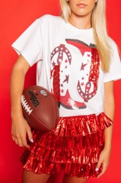 Queen Of Sparkles Red & White Fringe Boot Tee
