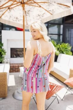 Queen Of Sparkles Red Yellow Paillette Stripe Skirt