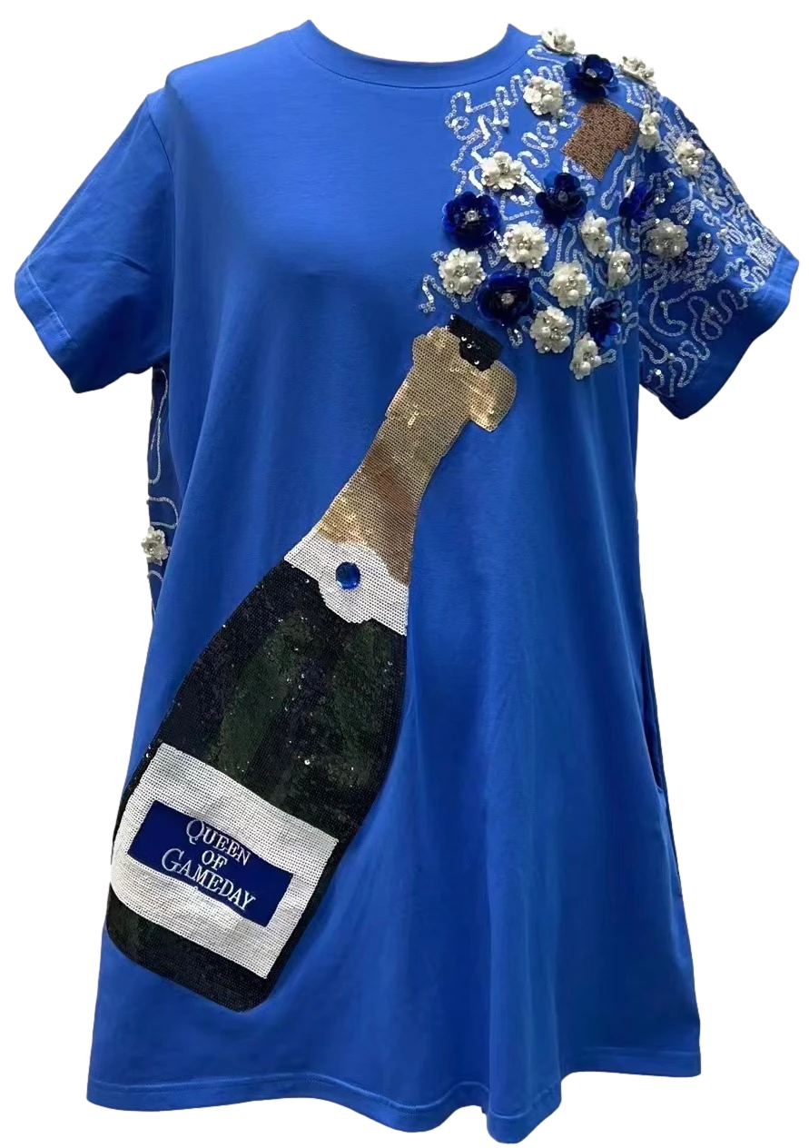 Queen Of Sparkles Royal & White Popping Champagne Tee Dress