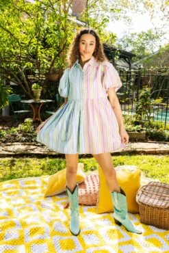 Queen Of Sparkles Split Sequin Stripe Collar Dress