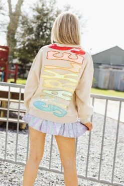 Queen Of Sparkles Tan Queen Back Sparkles Oversized Sweatshirt