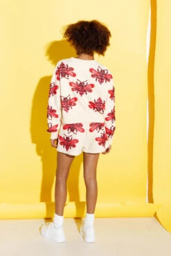 Welcome fresh style and all-day comfort with this Tan & Red Bumble Bee Short lounge set. Constructed with loose fit, high waisted shorts featuring a beaded bumble bee design, this set offers a stylish, trend-forward look for daily wear. Complete the look and shop the matching sweatshirt.