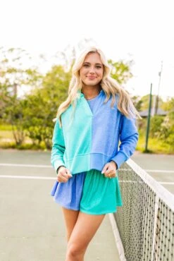 Queen Of Sparkles Teal & Periwinkle Rhinestone Polo Sweatshirt