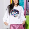 Look stylish while representing your team with this oversized White Multi Flower Football Sweatshirt. Crafted with a great attention to detail, this gameday-inspired piece features a unique and eye-catching flower embellished football design on the front. The perfect way to show your style and your team pride.