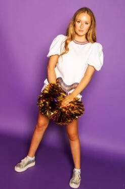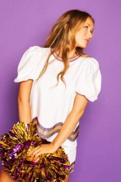 Queen Of Sparkles White, Purple/Gold Wavy Top