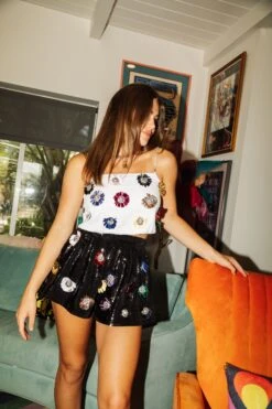 Queen Of Sparkles White Sequin Flower Tank