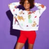This White, Black & Gold Lipstick Sweatshirt is a fashionable statement piece. Crafted from soft and comfortable fabric, this oversized sweatshirt is adorned with sequin lipstick icons to make an eye-catching statement. Perfect for those who want to stand out with their look.